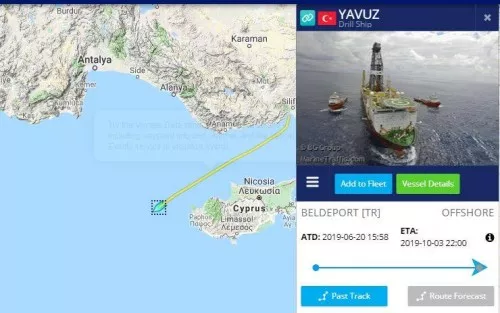 Ανοιχτά της Πάφου κατευθυνόμενο προς το τουρκικό γεωτρύπανο Φατίχ, εντός της κυπριακής ΑΟΖ, βρίσκεται στο μεταξύ και το δεύτερο τουρκικό γεωτρύπανο Γιαβούζ, σύμφωνα με την ιστοσελίδα Marine Traffic, μέσα από την οποία φαίνονται οι κινήσεις των πλοίων διεθνώς.