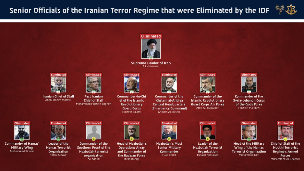 Οι ανώτεροι αξιωματούχοι του ιρανικού άξονα τρομοκρατίας εξουδετερώθηκαν με ακριβείς επιθέσεις και βάσει ακριβών πληροφοριών του IDF, συμπεριλαμβανομένης της επιχείρησης «Rising Lion» και της επιχείρησης «Northern Arrows».