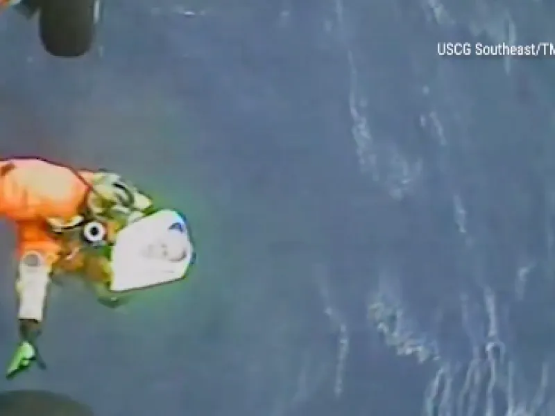 Δραματικό βίντεο δείχνει ένα κλιμάκιο της ακτοφυλακής των ΗΠΑ να εκτελεί μια αεροδιακομιψή υψηλού κινδύνου 75 μίλια (περίπου 120 χιλιόμετρα) ανοιχτά της Ακτής της Ντεϊτόνα στη Φλόριντα. Ο επιζών πλοιάρχος ανελκύστηκε με επιτυχία και αναφέρεται ότι δεν έχει τραυματιστεί.