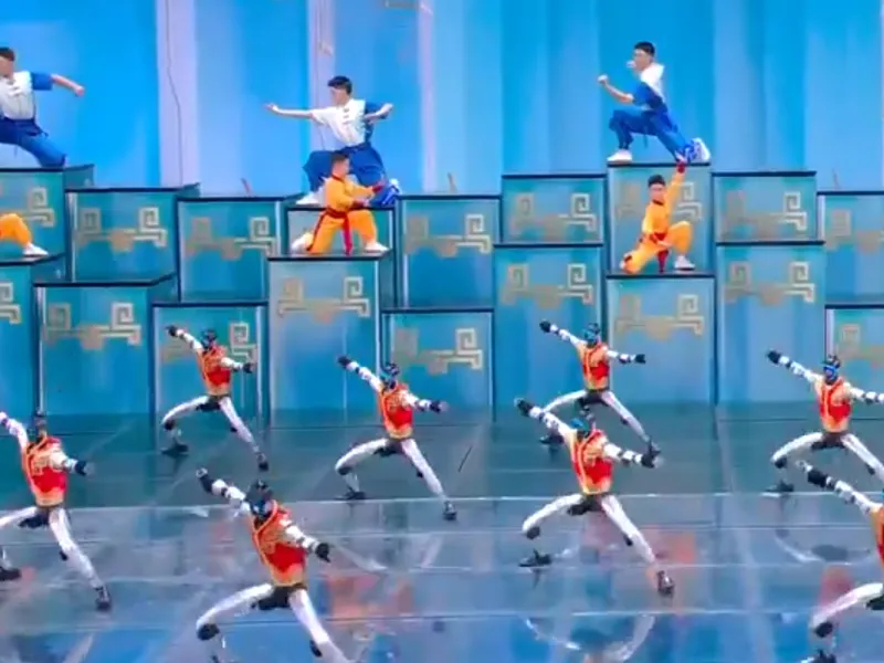 Στην εντυπωσιακή παράσταση, τα ευέλικτα ρομπότ, μαζί με παιδιά-αθλητές του κουνγκ φου, έκαναν ακροβατικά, ενώ χρησιμοποίησαν και παραδοσιακά όπλα όπως σπαθιά και νουντσάκου, επιδεικνύοντας εντυπωσιακή ταχύτητα, ισορροπία, συντονισμό και ακρίβεια.