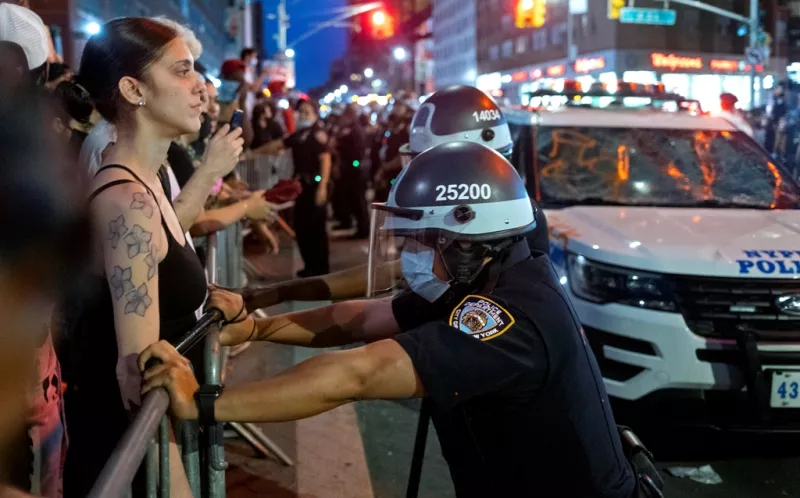 Στο Μπρούκλιν της Νέας Υόρκης περιπολικό πέρασε μέσα από το πλήθος των συγκεντρωμένων διαδηλωτών, που είχαν βγει στους δρόμους για δεύτερη ημέρα, αφού την Παρασκευή έγιναν περισσότερες από 200 συλλήψεις.