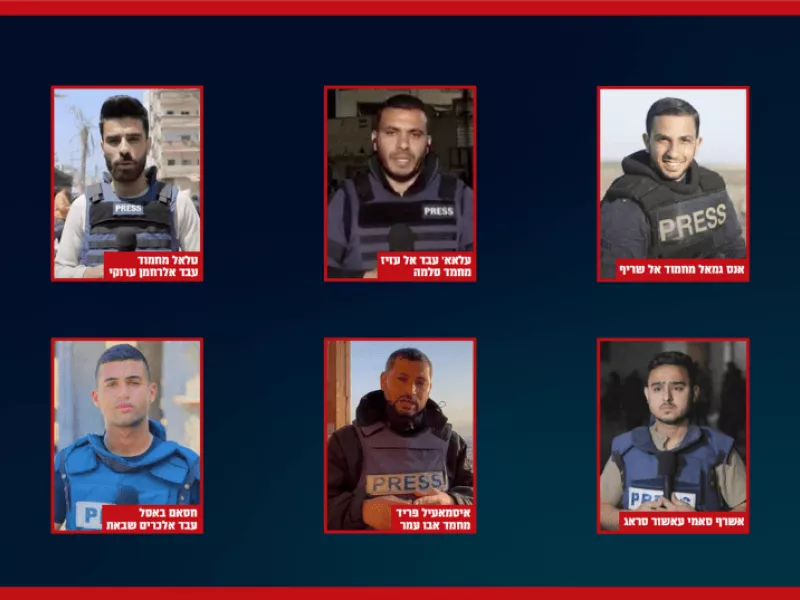 Οι IDF ανακοινώνουν ότι λόγω πληροφοριών που ανακτήθηκαν από τη Λωρίδα της Γάζας κατά τη διάρκεια στρατιωτικών επιχειρήσεων, μπορούν να αποκαλύψουν ότι οι Anas Al-Sharif, Ala' Salama, Hossam Shbat, Ashraf Al-Sarraj, Ismail Abu Amr και Talal Al-Aruki είναι όλοι συνδεδεμένοι με τις στρατιωτικές πτέρυγες είτε της Χαμάς είτε της PIJ.