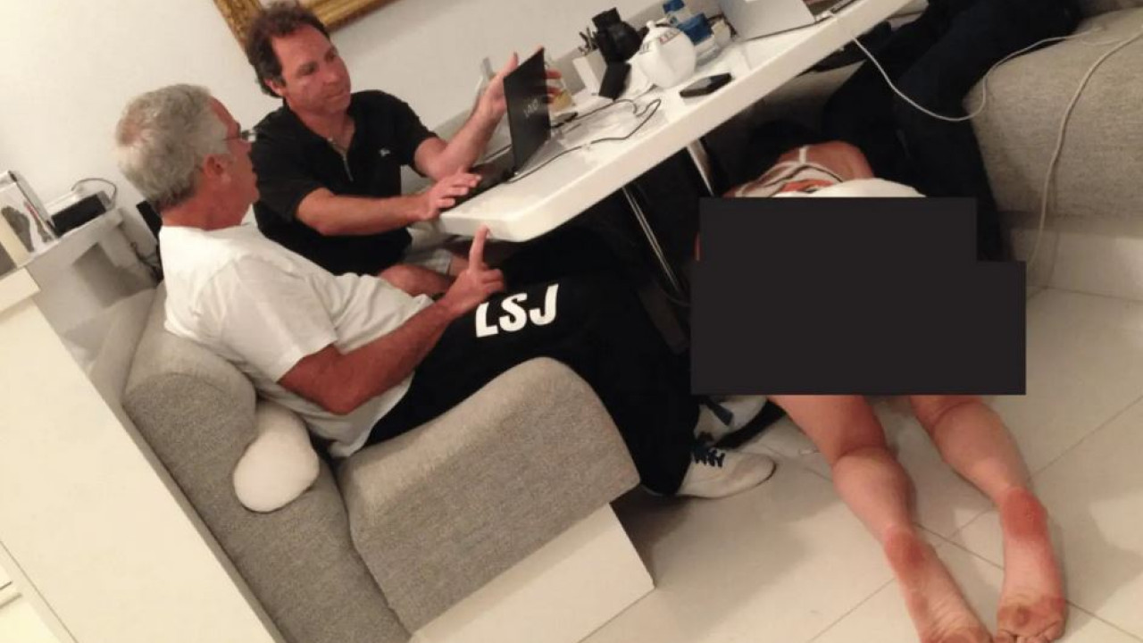 Ο Τζέφρι Έπσταϊν, γνωστός για την εμπλοκή του σε υποθέσεις σεξουαλικής κακοποίησης ανηλίκων, κάθεται ατάραχος σε ένα τραπέζι μαζί με δύο άλλους άνδρες. Η στάση τους και η έκφρασή τους δίνουν την εντύπωση ότι πρόκειται για μια συνηθισμένη, καθημερινή στιγμή. Η πραγματικότητα όμως είναι σοκαριστική: κάτω από το τραπέζι, μια γυναίκα σέρνεται στο πάτωμα, στραμμένη προς τον τοίχο, με το σώμα της εμφανώς εκτεθειμένο.
