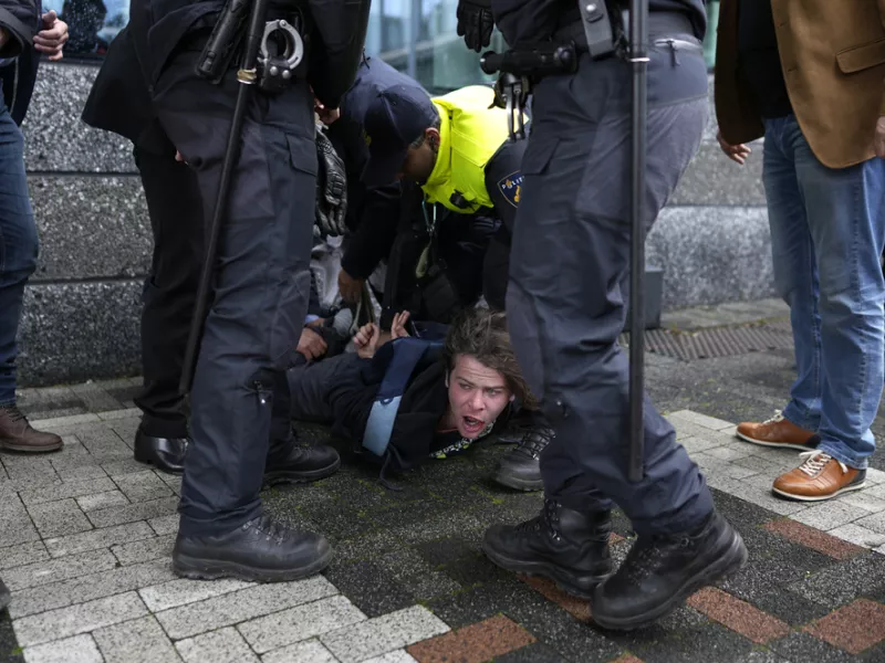 Un manifestant a été plaqué au sol par la sécurité à l'arrivée d'Emmanuel Macron à Amsterdam.