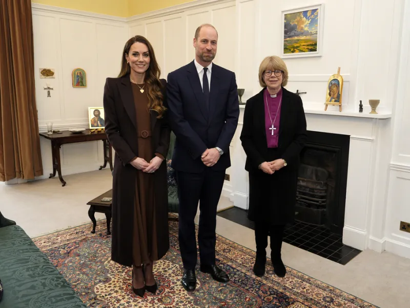 Το βασιλικό ζεύγος επισκέφθηκε το παλάτι Λάμπεθ, την κατοικία της Αρχιεπισκόπου στο Λονδίνο για τη χθεσινή συνάντηση κατά τη διάρκεια του μεσημεριανού γεύματος. Ο Ουίλιαμ και η Κέιτ φωτογραφήθηκαν να κάθονται μαζί σε έναν πράσινο καναπέ και να συνομιλούν με την Αρχιεπίσκοπο.