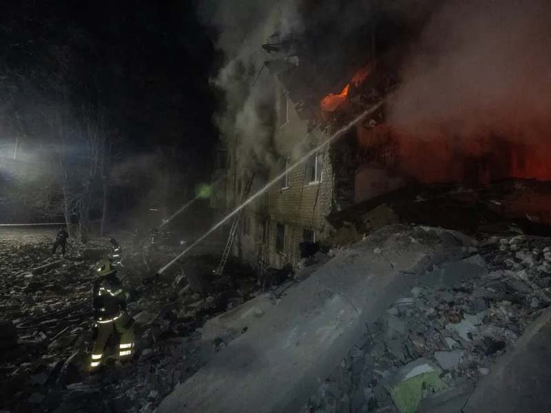 Russia just slammed a ballistic missile into a 5-story apartment building — one entire entrance reduced to rubble.