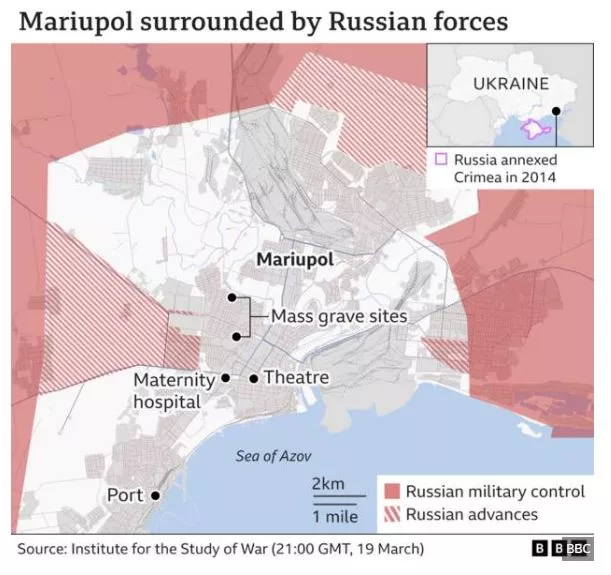 Δείτε τον χάρτη του BBC που δείχνει την περικύκλωση της Μαριούπολης από τις ρωσικές δυνάμεις: