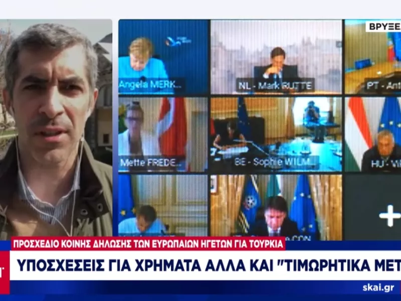 Τη διττή προσέγγιση της Ε.Ε. απέναντι στην Άγκυρα εκφράζει το προσχέδιο της κοινής δήλωσης της τηλεδιάσκεψης κορυφής που αφορά την Ανατολική Μεσόγειο. Σύμφωνα με τον ανταποκριτή του ΣΚΑΪ στις Βρυξέλλες, Γιάννη Παλαιολόγο, με το προσχέδιο της κοινής δήλωσης, οι «27» θα υπενθυμίσουν «το στρατηγικό ενδιαφέρον της Ευρωπαϊκής Ένωσης σε ένα σταθερό και ασφαλές περιβάλλον στην Ανατολική Μεσόγειο και στην ανάπτυξη μιας συνεργατικής και αμοιβαία επωφελούς σχέσης με την Τουρκία».