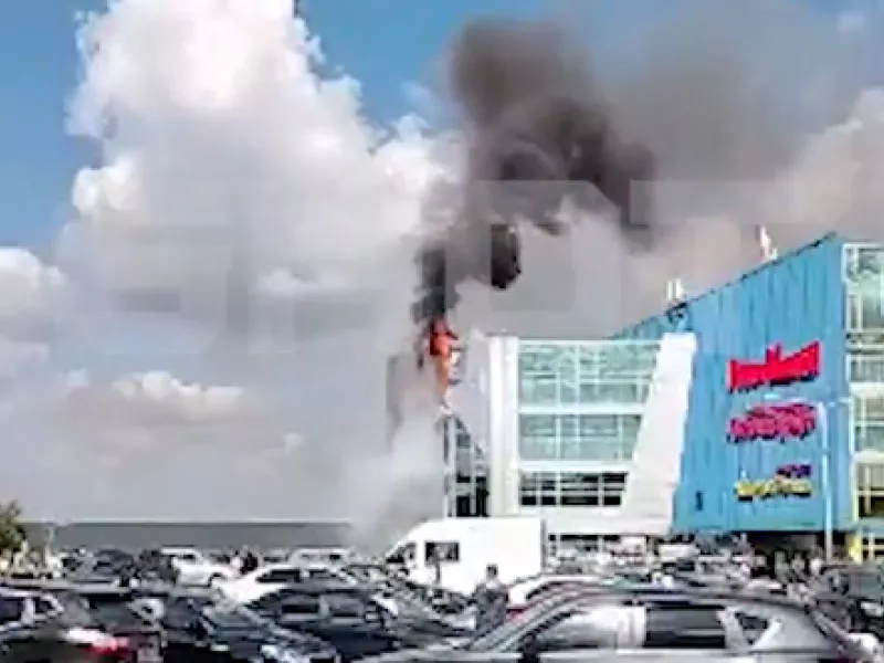 Σύμφωνα με το ρωσικό κανάλι SHOT, η πρόσοψη του εμπορικού κέντρου έπιασε φωτιά και η πυρκαγιά έχει χαρακτηριστεί «δεύτερης κατηγορίας πολυπλοκότητας». Δεν έχουν αναφερθεί θύματα.