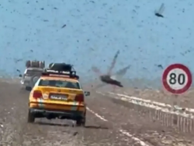 Οδηγοί στη Δυτική Σαχάρα χρειάστηκε να περάσουν μέσα από τεράστια σμήνη ακριδών, με τα έντομα να καλύπτουν τον δρόμο και να συγκρούονται με οχήματα κοντά στο Μπουγούντορ.