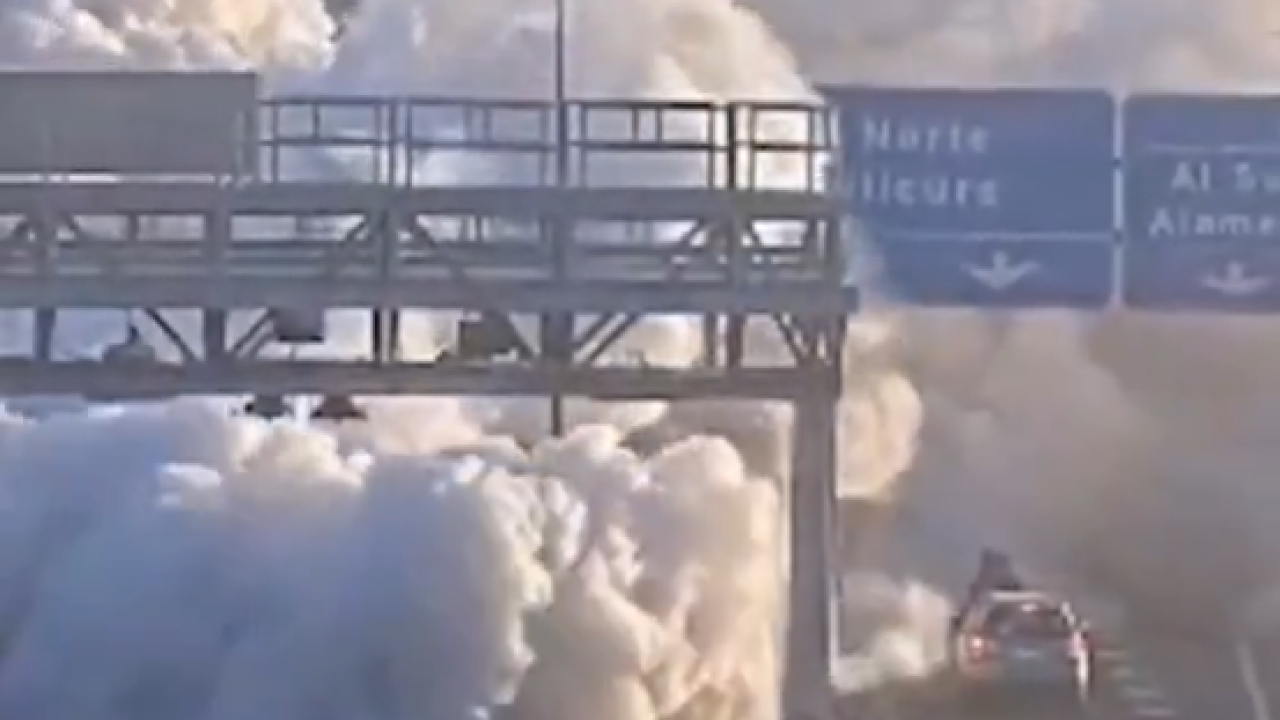 Ένα ακόμη βίντεο που δόθηκε στη δημοσιότητα από της Υπηρεσίες έκτακτης ανάγκης της χώρας, δείχνει τη στιγμή της ανατροπής του φορτηγού, το οποίο μετέφερε υγραέριο, στον κόμβο General Velasquez.
