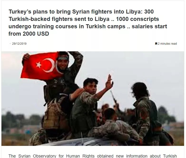 Στη Λιβύη βρίσκονται ήδη οι 300 πρώτοι πιστοί στον Ερντογάν Σύροι μαχητές/ μισθοφόροι για να αγωνιστούν στο πλευρό της κυβέρνησης της Τρίπολης σύμφωνα με το Συριακό Παρατηρητήριο Ανθρωπίνων Δικαιωμάτων.