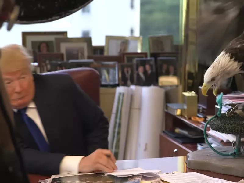 Τον Δεκέμβριο του 2015, ένας φαλακρός αετός ονόματι «Θείος Σαμ» δεν φάνηκε να ενθουσιάζεται και τόσο που βρέθηκε δίπλα στον Ντόναλντ Τραμπ, αρχίζοντας να τον παρενοχλεί και ανακατεύοντας τα μαλλιά του με τα μεγάλα φτερά του.