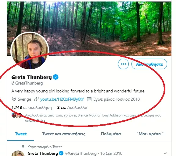 Με… τρολάρισμα στο τρολάρισμα του Ντόναλντ Τραμπ απάντησε η έφηβη ακτιβίστρια για το κλίμα Γκρέτα Τούνμπεργκ! Η Τούνμπεργκ άλλαξε την περιγραφή του προφίλ της στο Twitter, απαντώντας με αυτόν τον τρόπο στην προσπάθεια του Αμερικανού προέδρου να την ειρωνευτεί.