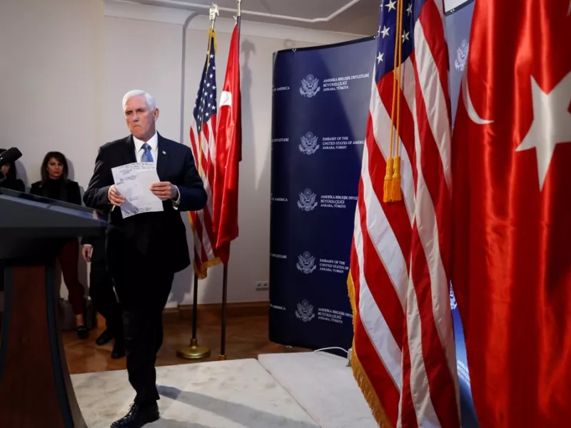 «Σήμερα οι ΗΠΑ και η Τουρκία συμφώνησαν για μια κατάπαυση πυρός στη Συρία», δήλωσε ο Πενς μετά από περισσότερες από τέσσερις ώρες συνομιλιών με τον Ταγίπ Ερντογάν. Η τουρκική επίθεση «θα σταματήσει τελείως όταν λήξει αυτή η αποχώρηση» κατά τη διάρκεια αυτής της περιόδου αναστολής, διευκρίνισε.