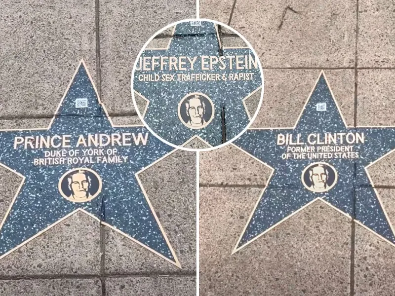Αστέρι με την φωτογραφία τους στη «Λεωφόρος της Ντροπής» έχουν, μεταξύ άλλων η Γκιλέιν Μάξουελ (συνεργός του Έπσταϊν, καταδικασμένη σε 20 χρόνια κάθειρξης) και ο Μπιλ Γκέιτς, ο έκπτωτος πρίγκιπας Άντριου και ο Μπιλ Κλίντον.
