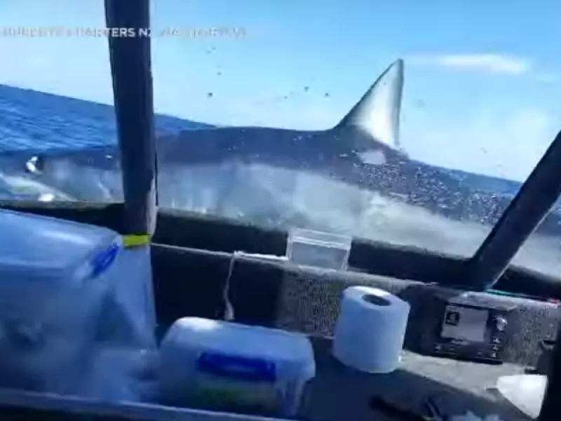 Απρόσκληπτος επισκέπτης... Μια ομάδα ψαράδων που επέβαινε σε ένα αλιευτικό σκάφος στα ανοιχτά της Γουιτιάνγκα της Νέας Ζηλανδίας έμειναν άναυδοι όταν ένας μεγάλος καρχαρίας μάκο πήδηξε έξω από το νερό και... προσγειώθηκε στην πλώρη του σκάφους, θυμίζοντας τον κινηματογραφικό «συγγενή» του στις ταινίες Jaws.