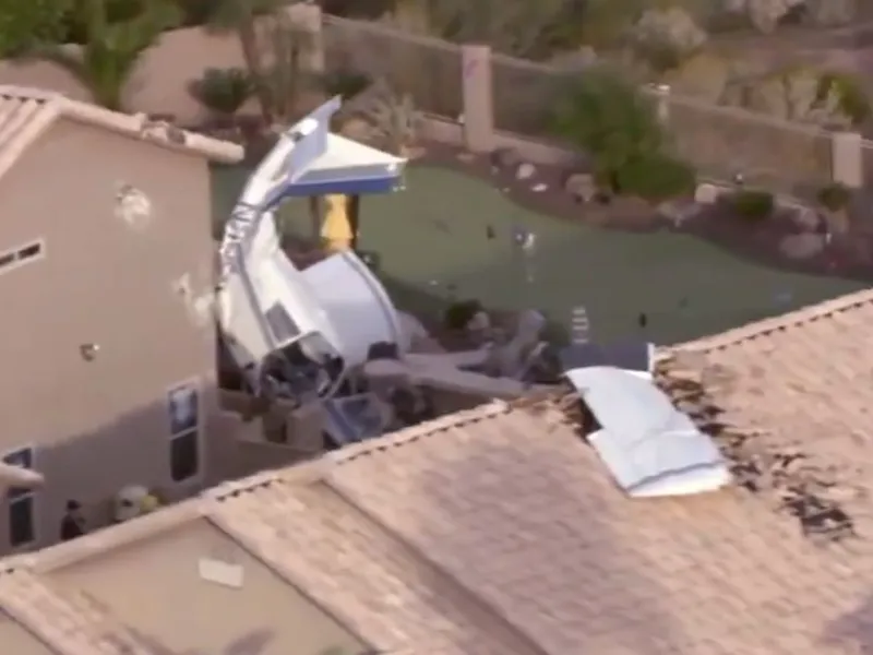 Σαν από θαύμα σώθηκαν οι κάτοικοι δύο σπιτιών σε προάστιο του Φοίνιξ, στην Αριζόνα, όταν ξαφνικά συνετρίβη στη σκεπή και στις αυλές τους ένα ελαφρύ, εκπαιδευτικό αεροπλάνο.