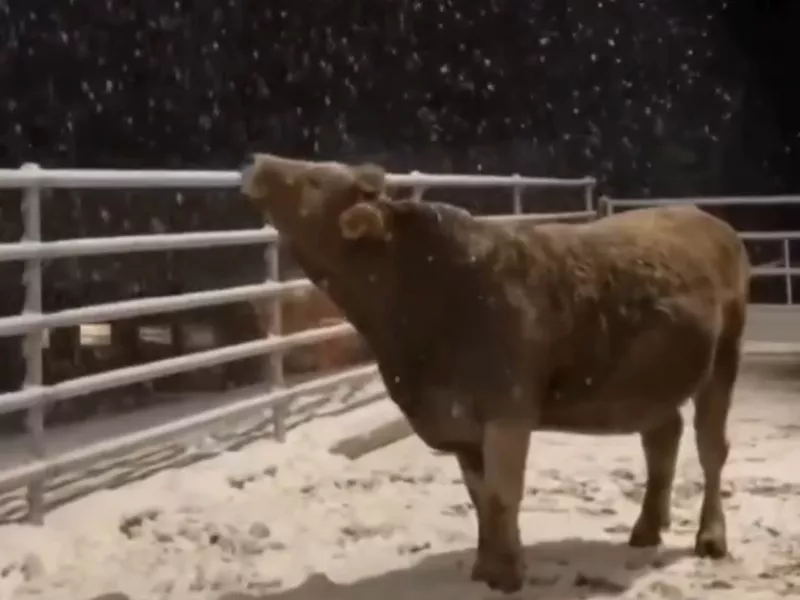 A cow saw snow for the first time — and instantly became a social-media star
