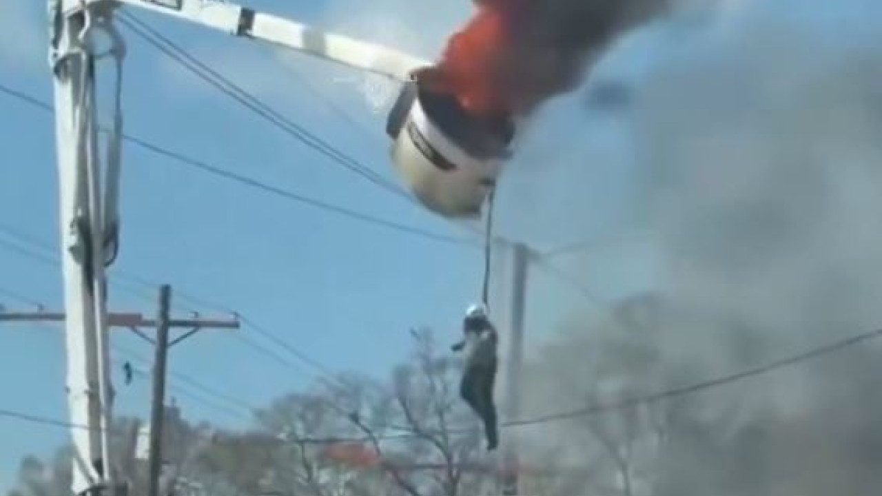 Τον γύρο του διαδικτύου κάνει ένα βίντεο από ένα τρομακτικό στιγμιότυπο στην Λουϊζιάνα των ΗΠΑ. Ένας εργάτης γερανοφόρου κρέμεται στο κενό ενώ πυρκαγιά έχει ξεσπάσει στο κουβούκλιο.