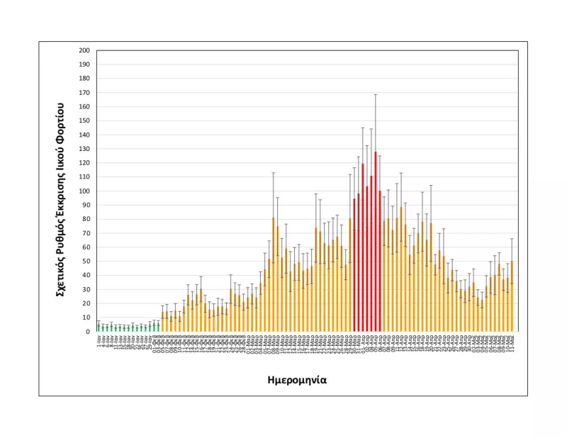 -Αυξημένη κατά 13% σε σχέση με τη μέση τιμή των δύο αμέσως προηγούμενων μετρήσεων, της Παρασκευής 07/05 και της Κυριακής 09/05.