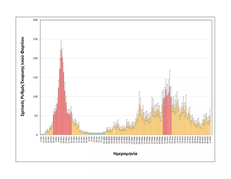 Συγκεκριμένα, στα δείγματα που λαμβάνονται καθημερινά στην είσοδο της Εγκατάστασης Επεξεργασίας Λυμάτων Θεσσαλονίκης, αναφορικά με τις εξορθολογισμένες τιμές σχετικής έκκρισης ιικού φορτίου, η μέση τιμή των δύο πιο πρόσφατων μετρήσεων, δηλαδή Δευτέρας 10/05 και της Τρίτης 11/05 είναι: