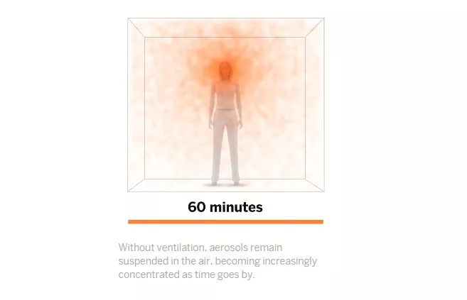 Χωρίς εξαερισμό, τα αερολύματα παραμένουν αιωρούμενα στον αέρα, και συγκεντρώνονται όλο και περισσότερο όσο περνά η ώρα: