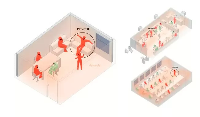 Με ιδιαίτερα παραστατικά γραφήματα, βασισμένα σε μοντέλο που ανέπτυξε ο χημικός Χοσέ Λουίς Χιμένεθ του πανεπιστημίου του Κολοράντο, παρουσιάζει η ισπανική εφημερίδα El Pais, τον τρόπο με τον οποίο μεταδίδεται ο κορωνοϊός σε κλειστούς χώρους.