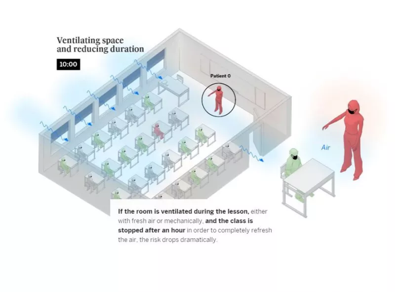 Με αερισμό της αίθουσας και μείωση της παραμονής σε αυτή κατά μία ώρα, υπάρχει κίνδυνος μόλυνσης για μόλις έναν μαθητή: