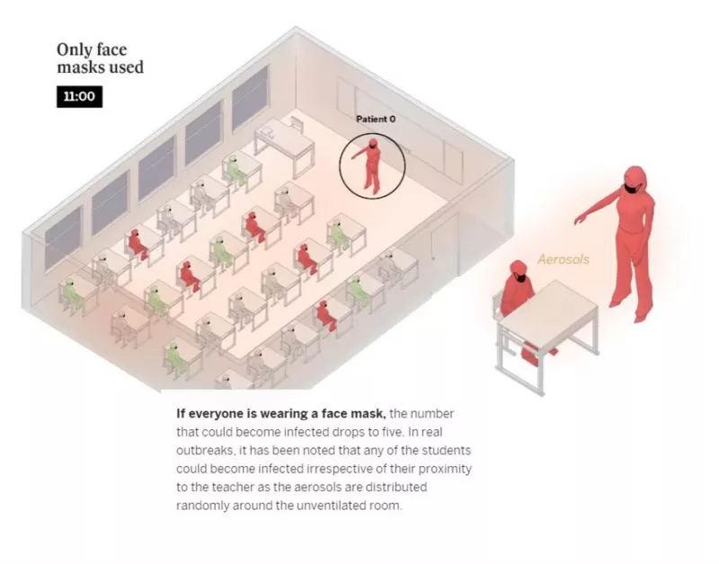 Αν περάσουν δύο ώρες σε μια αίθουσα με 24 μαθητές και έναν εκπαιδευτικό φορέα του ιού, και χωρίς μάσκες τότε υπάρχει κίνδυνος να μολυνθούν 12 παιδιά: