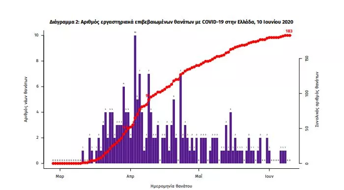 Δεν έχει καταγραφεί κανένας νέος θάνατος ασθενούς με COVID-19, ενώ από την έναρξη της επιδημίας έχουν καταγραφεί συνολικά 183 θάνατοι. Η μέση ηλικία των ασθενών που απεβίωσαν είναι 76 έτη. Ο αριθμός των ασθενών που νοσηλεύονται διασωληνωμένοι είναι 12 (58.3% άνδρες).