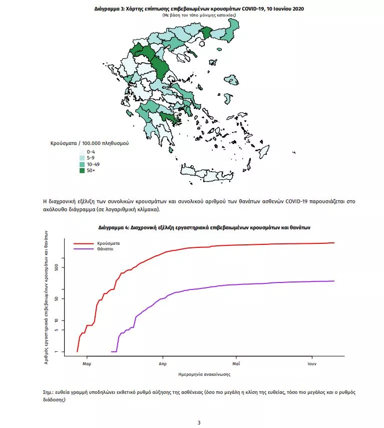 Τα στοιχεία που παρουσιάζονται αφορούν περιστατικά από την επιδημιολογική επιτήρηση της νόσου από το νέο κορωνοϊό (COVID19), με βάση τα δεδομένα που έχουν δηλωθεί στον ΕΟΔΥ και καταγραφεί μέχρι τις 10 Ιουνίου 2020 (ώρα 15:00).