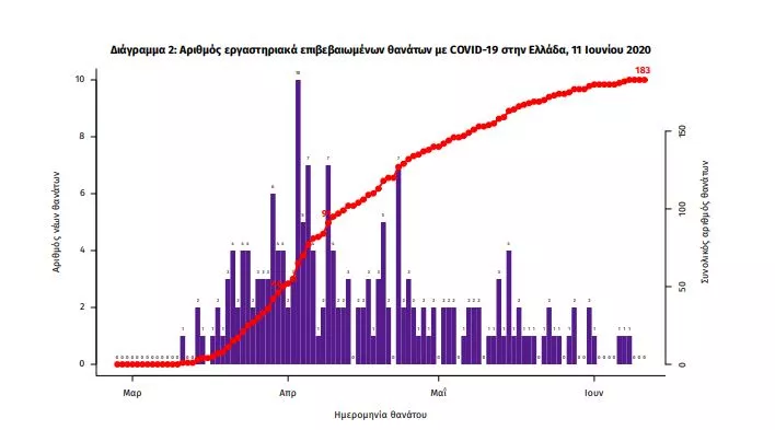 Δεν έχει καταγραφεί κανένας νέος θάνατος ασθενούς με COVID-19, ενώ από την έναρξη της επιδημίας έχουν καταγραφεί συνολικά 183 θάνατοι. Η μέση ηλικία των ασθενών που απεβίωσαν είναι 76 έτη.