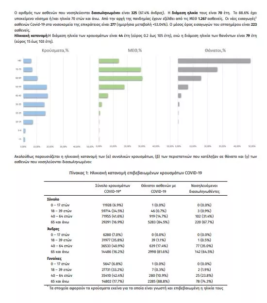 Ο αριθμός των ασθενών που νοσηλεύονται διασωληνωμένοι είναι 325 (67.4% άνδρες).