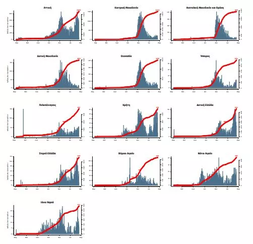 Ο χάρτης αποτυπώνει τη γεωγραφική κατανομή των συνολικών κρουσμάτων COVID-19 (από την αρχή της επιδημίας) ανά Περιφερειακή Ενότητα της χώρας, με βάση την δηλωθείσα διεύθυνση μόνιμης κατοικίας του ασθενούς, ή τη διεύθυνση προσωρινής διαμονής για τους τουρίστες και άλλους προσωρινά διαμένοντες στην Ελλάδα. Συμπεριλαμβάνονται τόσο κρούσματα με ιστορικό ταξιδίου (“εισαγόμενα”) όσο και κρούσματα με πιθανή εγχώρια μετάδοση.