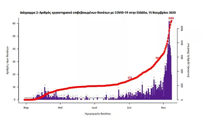 Οι νέοι θάνατοι ασθενών με COVID-19 είναι 71, ενώ από την έναρξη της επιδημίας έχουν καταγραφεί συνολικά 1106 θάνατοι.