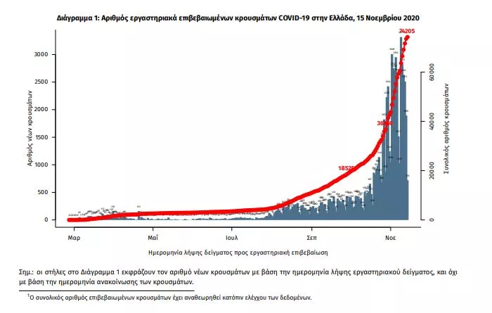 Τα νέα εργαστηριακά επιβεβαιωμένα κρούσματα της νόσου είναι 1698, εκ των οποίων 25 εντοπίστηκαν κατόπιν ελέγχων στις πύλες εισόδου της χώρας.