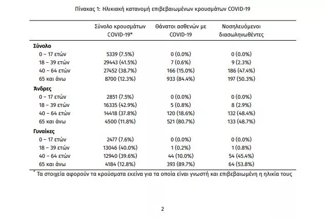Η ηλικιακή κατανομή των (α) συνολικών κρουσμάτων, (β) των περιστατικών που κατέληξαν σε θάνατο και (γ) των ασθενών που νοσηλεύονται διασωληνωμένοι, είναι η ακόλουθη: