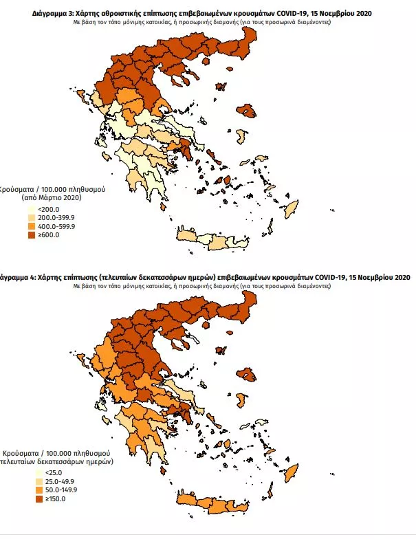 Ο χάρτης αποτυπώνει τη γεωγραφική κατανομή των συνολικών κρουσμάτων COVID-19 (από την αρχή της επιδημίας) ανά Περιφερειακή Ενότητα της χώρας, με βάση την δηλωθείσα διεύθυνση μόνιμης κατοικίας του ασθενούς, ή τη διεύθυνση προσωρινής διαμονής για τους τουρίστες και άλλους προσωρινά διαμένοντες στην Ελλάδα. Συμπεριλαμβάνονται τόσο κρούσματα με ιστορικό ταξιδίου (“εισαγόμενα”) όσο και κρούσματα με πιθανή εγχώρια μετάδοση.