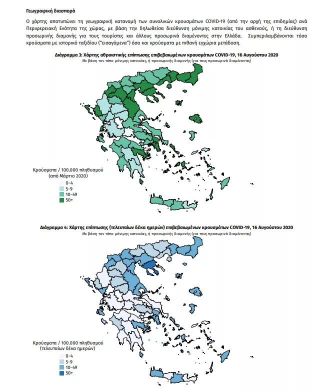 1667 (23.6%) θεωρούνται σχετιζόμενα με ταξίδι από το εξωτερικό και 3353 (47.4%) είναι σχετιζόμενα με ήδη γνωστό κρούσμα.