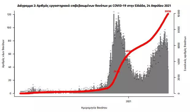 Οι νέοι θάνατοι ασθενών με COVID-19 είναι 86, ενώ από την έναρξη της επιδημίας έχουν καταγραφεί συνολικά 9.950 θάνατοι. Το 95.5% είχε υποκείμενο νόσημα ή/και ηλικία 70 ετών και άνω.