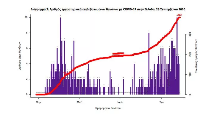 Ο συνολικός αριθμός των κρουσμάτων ανέρχεται σε 17707 (ημερήσια μεταβολή +1.5%), εκ των οποίων 55.9% άνδρες. 1 Οι νέοι θάνατοι ασθενών με COVID-19 είναι 4, ενώ από την έναρξη της επιδημίας έχουν καταγραφεί συνολικά 383 θάνατοι.Η διάμεση ηλικία των ασθενών που απεβίωσαν είναι 78 έτη. Ο αριθμός των ασθενών που νοσηλεύονται διασωληνωμένοι είναι 73 (76.7% άνδρες).