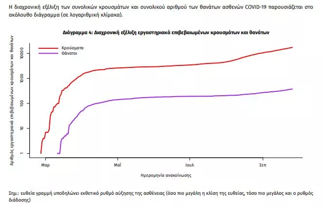 Τέλος, έχουμε 7 ακόμα καταγεγραμμένους θανάτους και 376 θανάτους συνολικά στη χώρα. 140 (37.2%) γυναίκες και οι υπόλοιποι άνδρες. Η διάμεση ηλικία των θανόντων συμπολιτών μας ήταν τα 78 έτη και το 96.8% είχε κάποιο υποκείμενο νόσημα ή/και ηλικία 70 ετών και άνω.