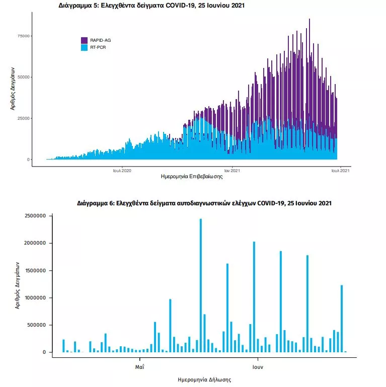 (SARS-CoV-2) και που δηλώνουν συστηματικά το σύνολο των δειγμάτων που ελέγχουν, έχουν συνολικά ελεγχθεί 5.366.904 κλινικά δείγματα ενώ