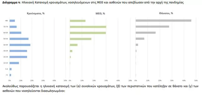 Ακολούθως παρουσιάζεται η ηλικιακή κατανομή των (α) συνολικών κρουσμάτων, (β) των περιστατικών που κατέληξαν σε θάνατο και (γ) των ασθενών που νοσηλεύονται διασωληνωμένοι:
