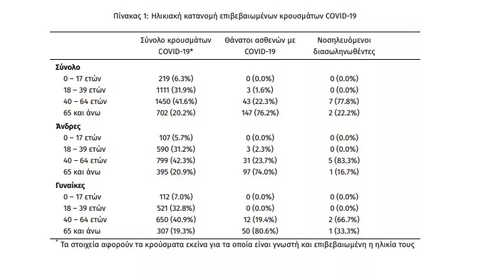 Η ηλικιακή κατανομή των (α) συνολικών κρουσμάτων, (β) των περιστατικών που κατέληξαν σε θάνατο και (γ) των ασθενών που νοσηλεύονται διασωληνωμένοι, είναι η ακόλουθη: