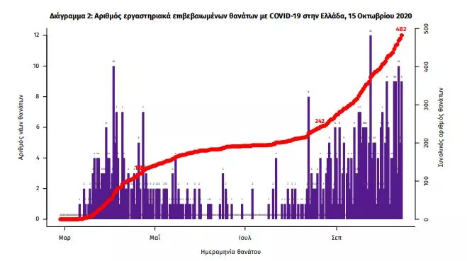 Οι νέοι θάνατοι ασθενών με COVID-19 είναι 13, ενώ από την έναρξη της επιδημίας έχουν καταγραφεί συνολικά 482 θάνατοι.Η διάμεση ηλικία των ασθενών που απεβίωσαν είναι 79 έτη. Ο αριθμός των ασθενών που νοσηλεύονται διασωληνωμένοι είναι 82 (70.7% άνδρες).