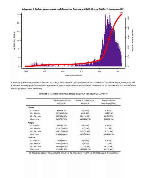 Τέλος, έχουμε 25 νέους θανάτους από τη νόσο COVID-19, φθάνοντας τους 5354 θανάτους συνολικά στη χώρα, εκ των οποίων 3161 (59.0%) άνδρες. Η διάμεση ηλικία των θανόντων συμπολιτών μας ήταν τα 79 έτη και το 95.5% είχε κάποιο υποκείμενο νόσημα ή/και ηλικία 70 ετών και άνω.