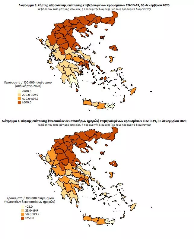 Ο χάρτης αποτυπώνει τη γεωγραφική κατανομή των συνολικών κρουσμάτων COVID-19 (από την αρχή της επιδημίας) ανά Περιφερειακή Ενότητα της χώρας, με βάση την δηλωθείσα διεύθυνση μόνιμης κατοικίας του ασθενούς, ή τη διεύθυνση προσωρινής διαμονής για τους τουρίστες και άλλους προσωρινά διαμένοντες στην Ελλάδα.
