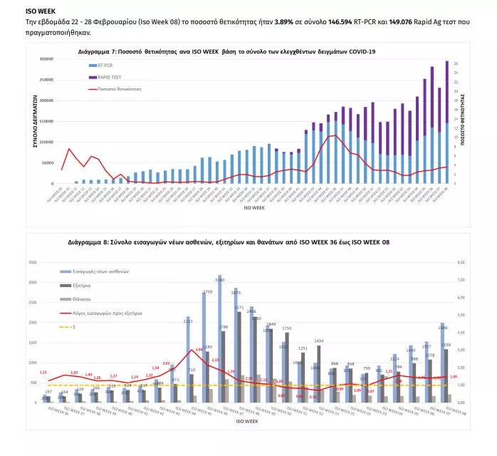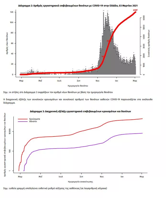 Οι νέοι θάνατοι ασθενών με COVID-19 είναι 40, ενώ από την έναρξη της επιδημίας έχουν καταγραφεί συνολικά 6.597 θάνατοι. Το 95.7% είχε υποκείμενο νόσημα ή/και ηλικία 70 ετών και άνω.